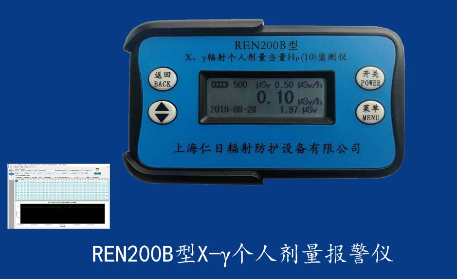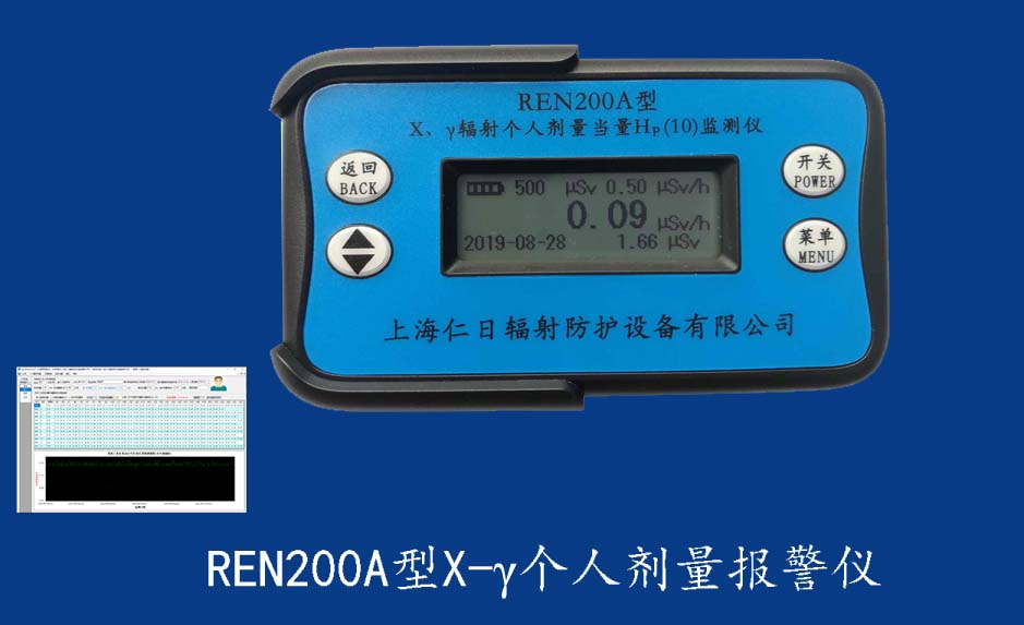 REN200型X、γ個(gè)人劑量報(bào)警儀(又叫X、γ輻射個(gè)人劑量當(dāng)量HP(10)監(jiān)測(cè)儀)內(nèi)置高靈敏度蓋格計(jì)數(shù)管為探測(cè)器,主要用來(lái)監(jiān)測(cè)各種放射性工作場(chǎng)所的X、γ以及硬β射線(xiàn)的輻射,具有響應(yīng)快,測(cè)量范圍寬的特點(diǎn)。能顯示工作場(chǎng)所的劑量當(dāng)量率和累積劑量,更換電池時(shí),日期及累積數(shù)據(jù)能永久保存。可選配RenRiPersonal個(gè)人劑量管理軟件,該軟件可存儲(chǔ)多個(gè)人的歷史數(shù)據(jù),能記錄日累積、月累積、年累積、輻照時(shí)長(zhǎng)、計(jì)算平均劑量率、扣除或不扣除本底輻射,且以文字和圖譜的方式展現(xiàn)數(shù)據(jù)。廣泛應(yīng)用于核電站、加速器、鋼鐵、化工、同位素應(yīng)用、醫(yī)院、工業(yè)X、γ無(wú)損探傷、放射醫(yī)療、鈷源治療、γ輻照、放射性實(shí)驗(yàn)室、核設(shè)施周?chē)h(huán)境監(jiān)測(cè)