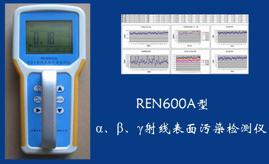 REN600A型α、β、γ射線(xiàn)表面污染檢測(cè)儀即可檢測(cè)α、β、γ射線(xiàn),也能檢測(cè)到X射線(xiàn),它采用高速嵌入式微處器作為數(shù)據(jù)處理單元,點(diǎn)陣式大屏幕LCD液晶顯示,讀數(shù)清晰、操作方便,具有400條超大容量數(shù)據(jù)存儲(chǔ)。儀器采用進(jìn)口的大面積MICA蓋革探測(cè)器,具有較高探測(cè)效率,可進(jìn)行α、β輻射表面污染檢測(cè)和X、γ輻射劑量率的監(jiān)測(cè)。此外通過(guò)配套的RenriCont表面污染管理軟件可將存儲(chǔ)的數(shù)據(jù)讀出后分析。可廣泛用在制藥廠、實(shí)驗(yàn)室、發(fā)電廠、進(jìn)出口商檢、采石場(chǎng)、環(huán)境實(shí)驗(yàn)室、環(huán)境污染調(diào)查、核安全應(yīng)急、緊急狀況營(yíng)救站、金屬處理廠、地下油田、供油管道裝備、醫(yī)院核醫(yī)學(xué)科、同位素實(shí)驗(yàn)室、環(huán)境保護(hù)和警察局等部門(mén)。REN600A型α、β、γ射線(xiàn)表面